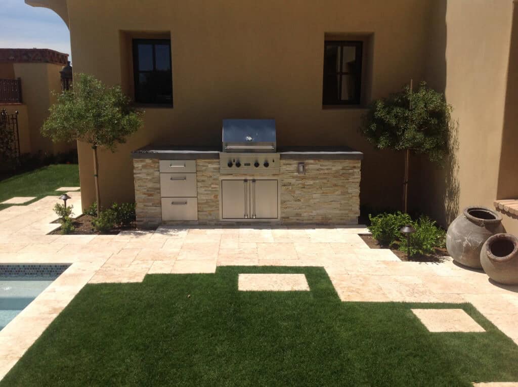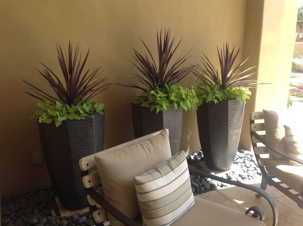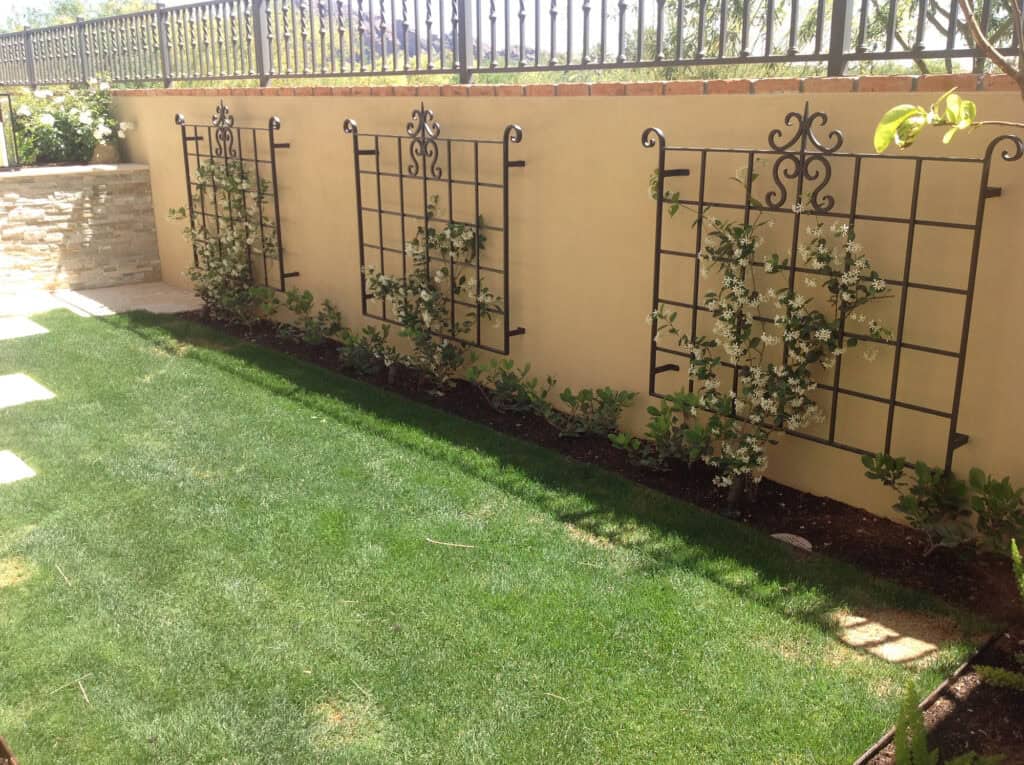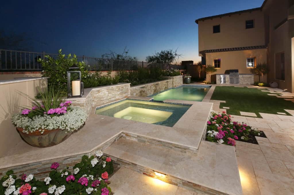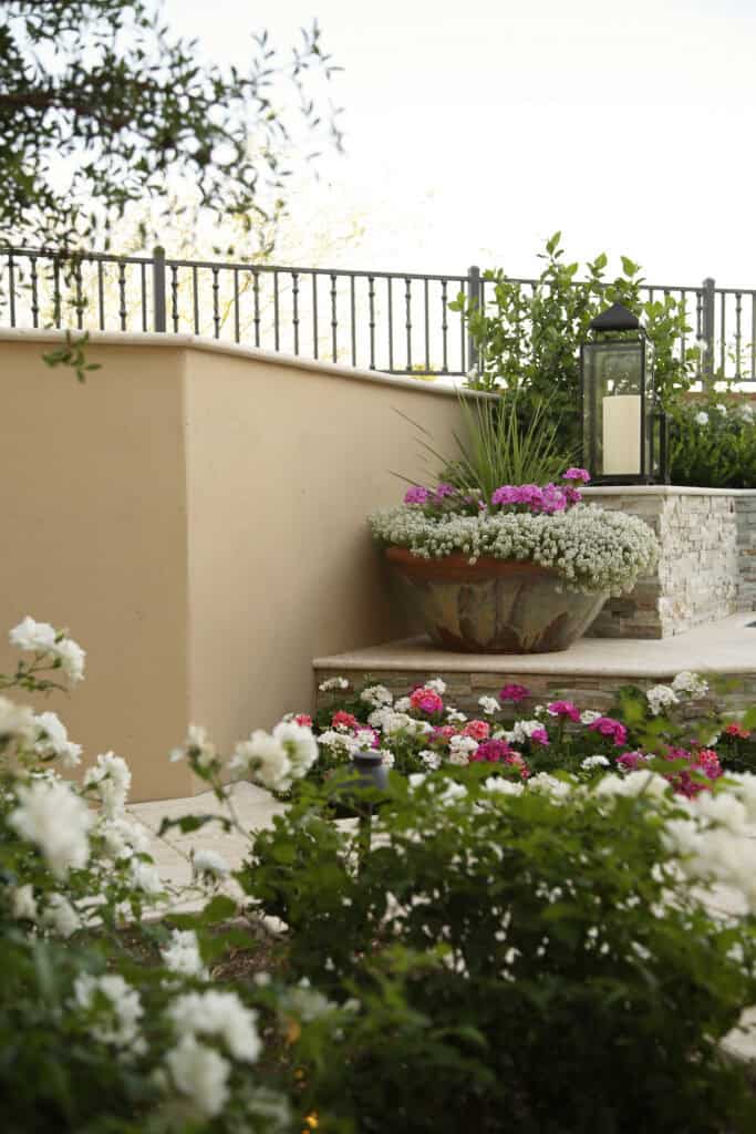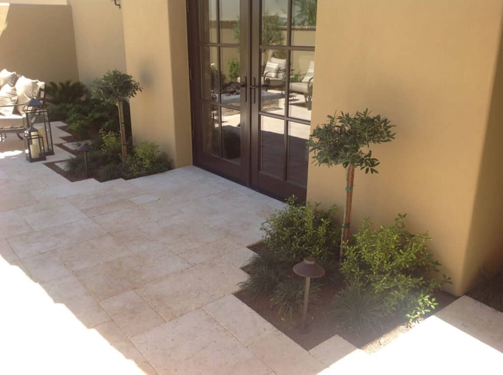 In the pool, we added a new interior, waterline tile, patios & raised stacked stone walls at the back of the pool/spa that housed fountains & layered plantings. This simple addition provided drama, color & interest that and added much to the backyard. The custom wrought iron trellises were a nice touch as well. We can’t forget about the front courtyard! What an excellent entertaining space for an intimate gathering of friends with an outdoor fire pit accompanied by a soothing wall fountain for ambient noise. We are proud of how this unique Paradise Valley retreat turned out!