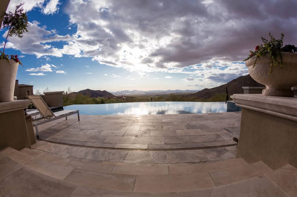The centerpiece of this property has to be the 45’ x 20’ play pool with a 56’ long negative edge that falls 10’ to the natural desert floor below. The drama this expanse of water creates in the foreground is breathtaking when viewing the Scottsdale airpark & downtown Phoenix in the distance. You would be hard put to find a more serene destination to entertain & enjoy a quiet Arizona sunset.