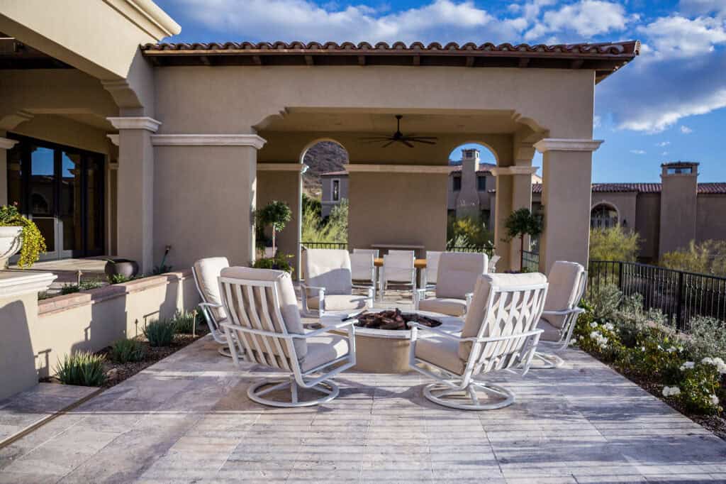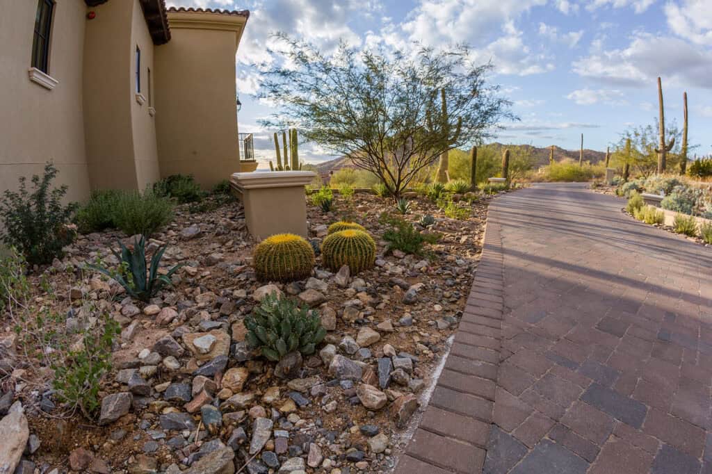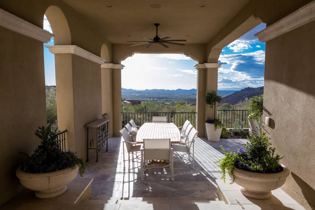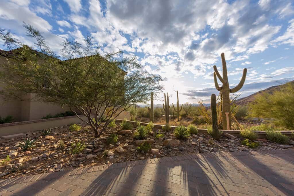 The property is nestled in the McDowell mountains, this home has some gorgeous vignettes that stand out from the saguaro forest & desert accents lining the driveway, to the timeless formal layout of the auto court to the front entry with clean lines.